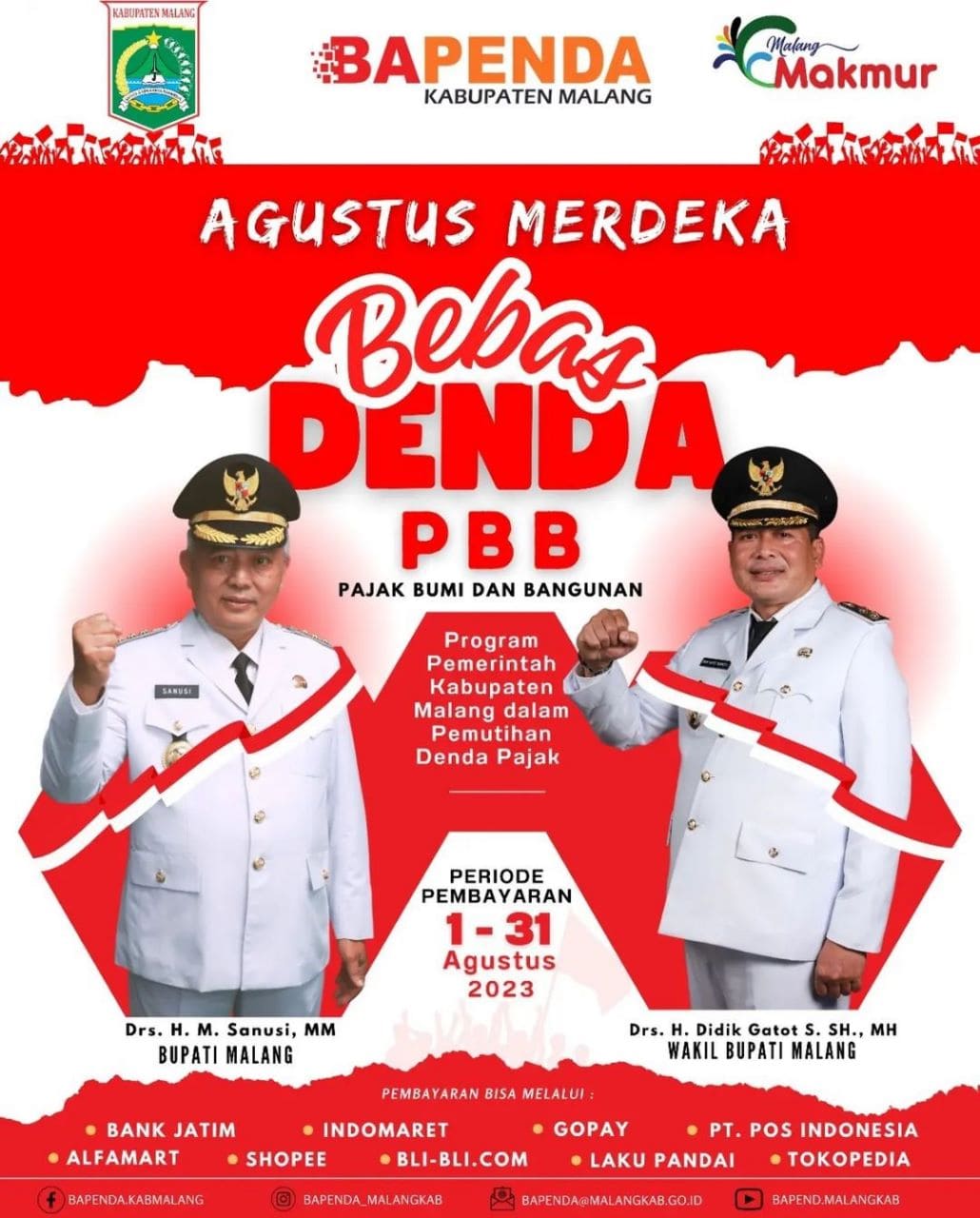 MALANG, Tugujatim.id – Badan Pendapatan Daerah (Bapenda) Kabupaten Malang menghapus denda Pajak Bumi dan Bangunan (PBB) bagi wajib pajak yang menunggak sejak 2002 hingga 2022. Bapenda Kabupaten Malang memberlakukan pemutihan ini mulai 1-31 Agustus 2023. Penghapusan denda ini merupakan kebijakan dari Bupati Malang Sanusi dalam rangka merayakan Hari Ulang Tahun Republik Indonesia (HUT RI) ke-78. […]